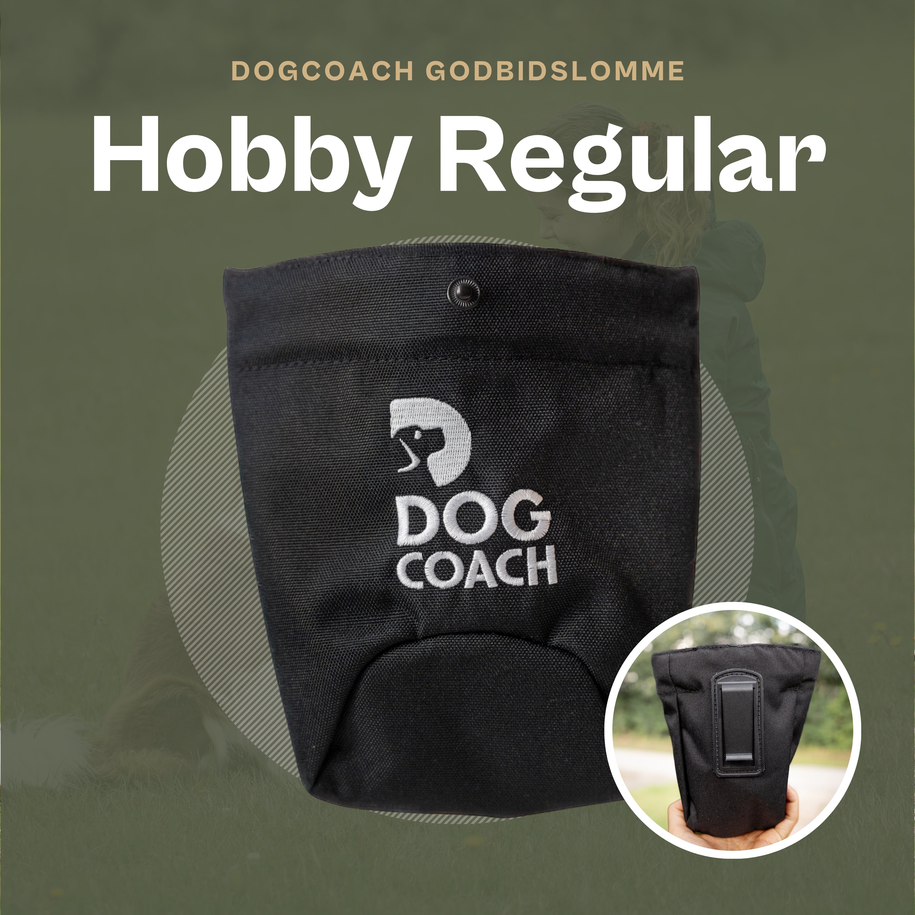 The Hobby model is perfect for when you want to use a treat pocket without wearing a full DogCoach outfit – simply attach it with the integrated belt clip.